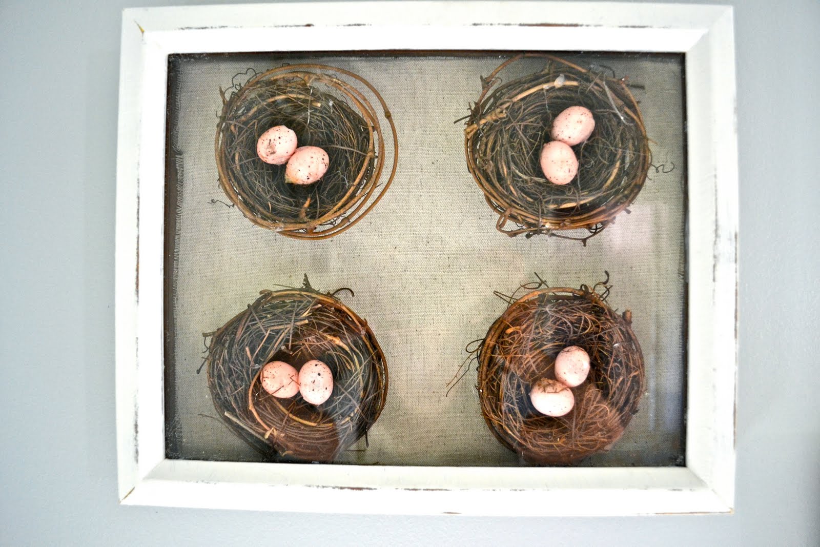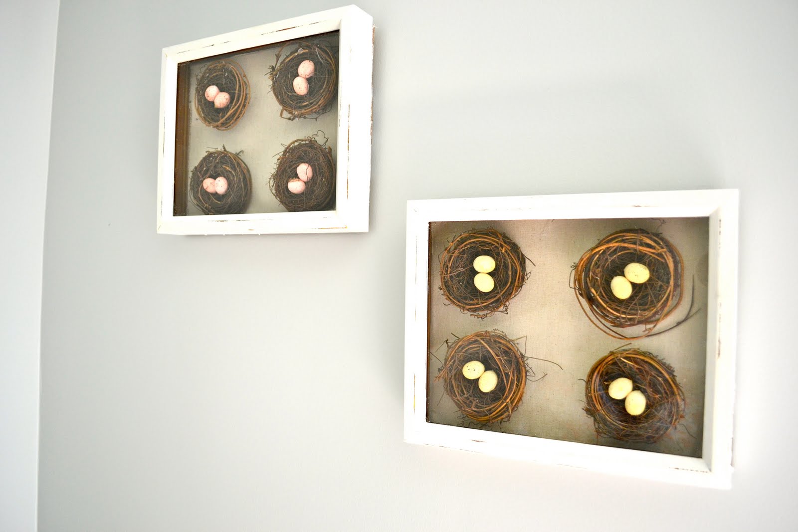 A little Close-up of the cute little nests… & the shabby chic shadow boxes