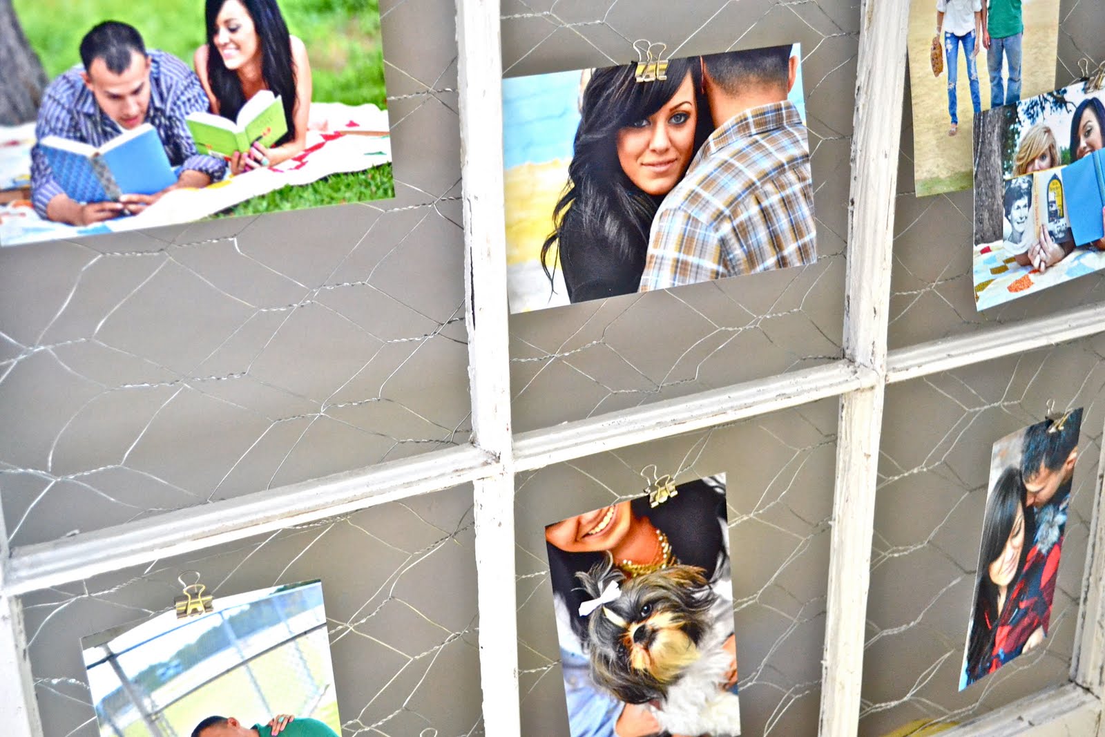 I made an old window into a picture “frame” using chicken wire.. love.
