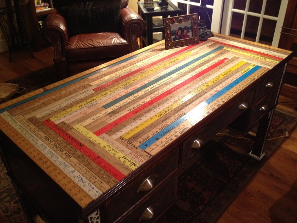 Talk about creative thinking! Check out this yard stick covered table