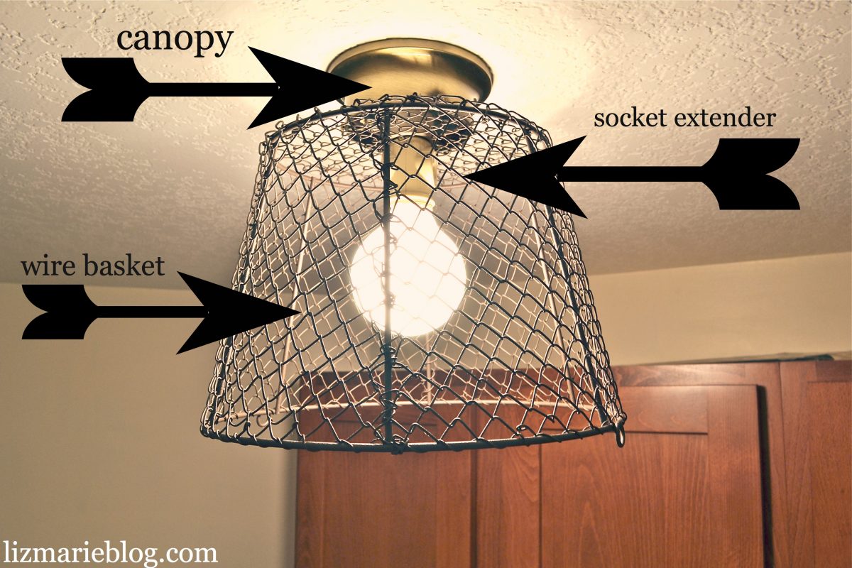 screw in socket extender to hold the basket onto the canopy, put light bulb in,