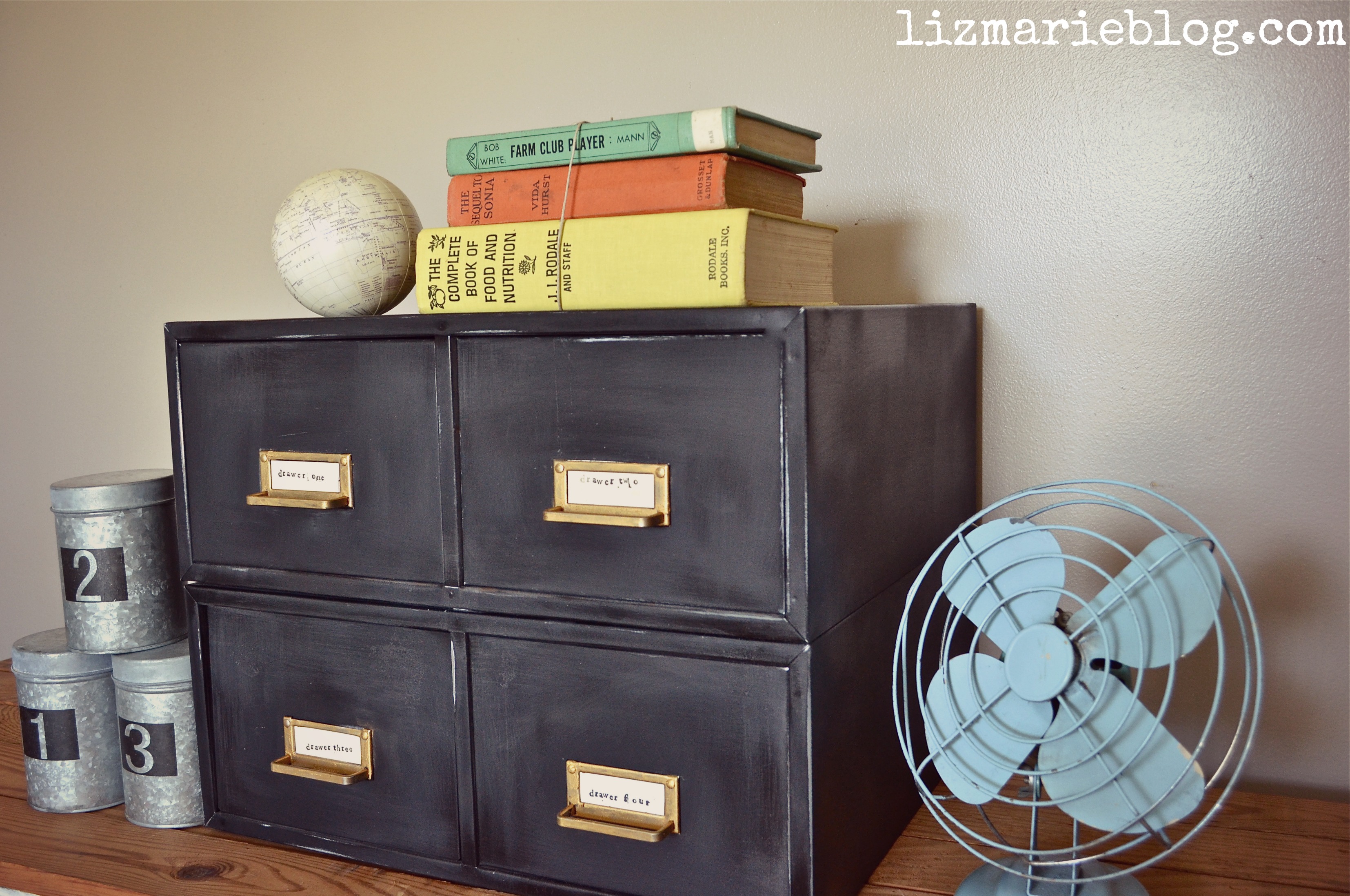 These were the drawers before I started working on them. My original goal was to have glossy black drawers with solid gold hardware. But after I recorded the video & really started putting the drawers together, I quickly knew that I wanted them to be really distressed & like they had been used in an old hotel for years. Yes, exactly like that.