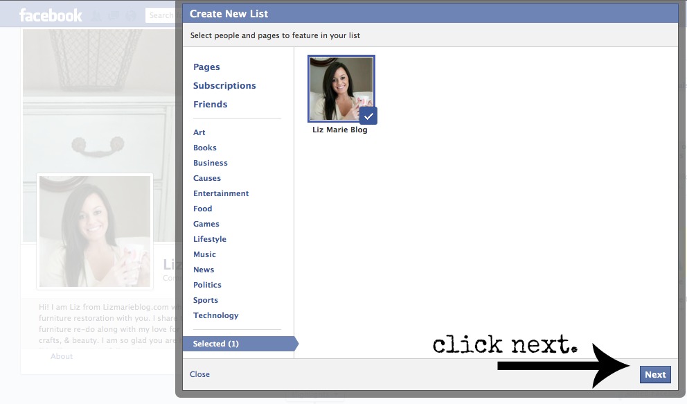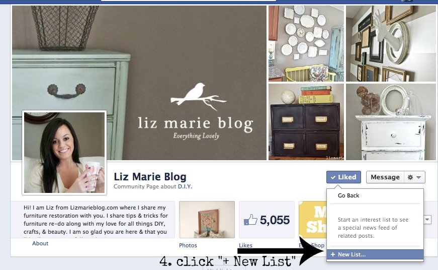 Another option facebook offers for you to receive updates from your favorite bloggers is by creating interest lists. You can add all of your favorite pages to lists so they are all combined in one area to view whenever you want.