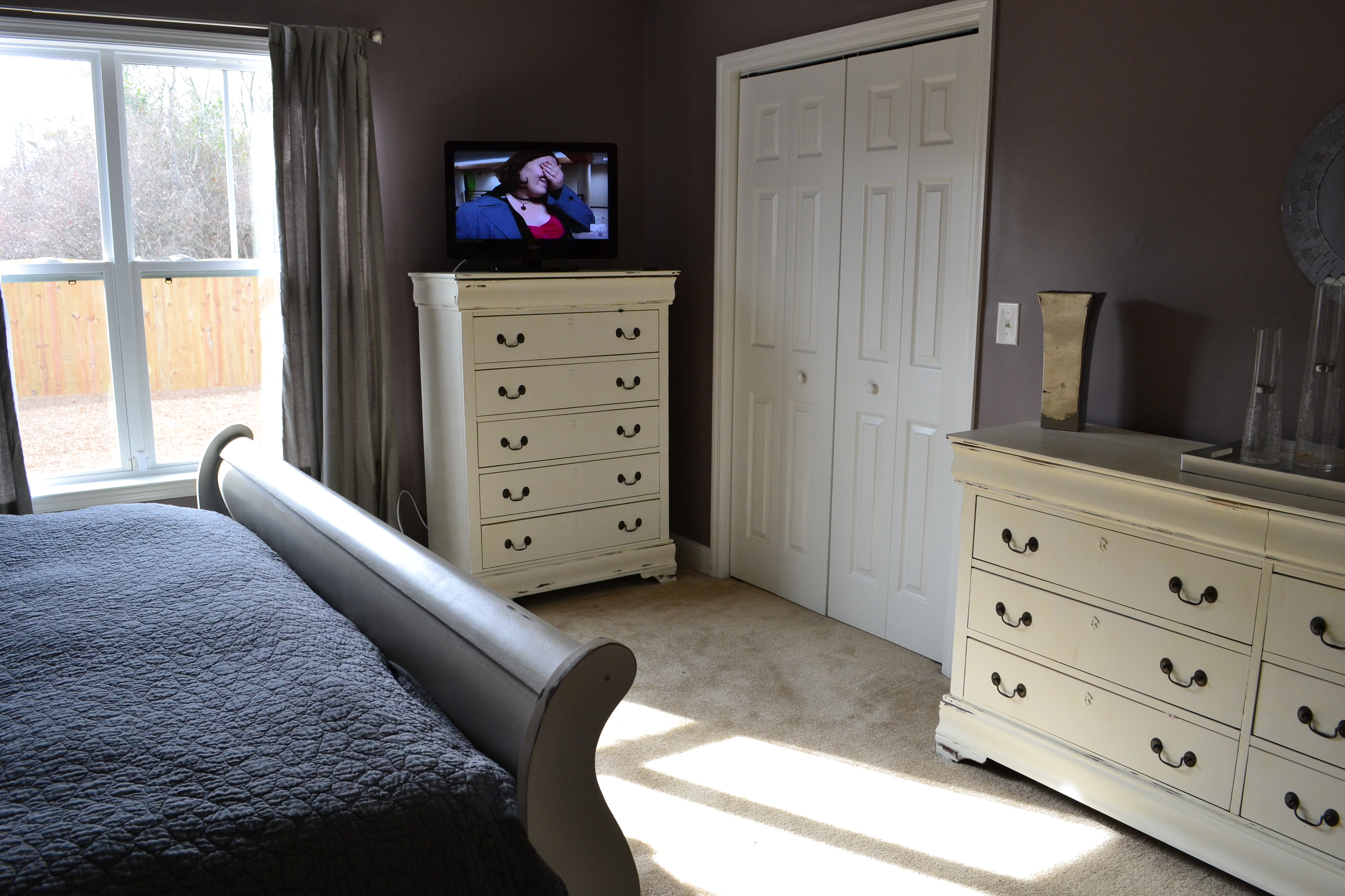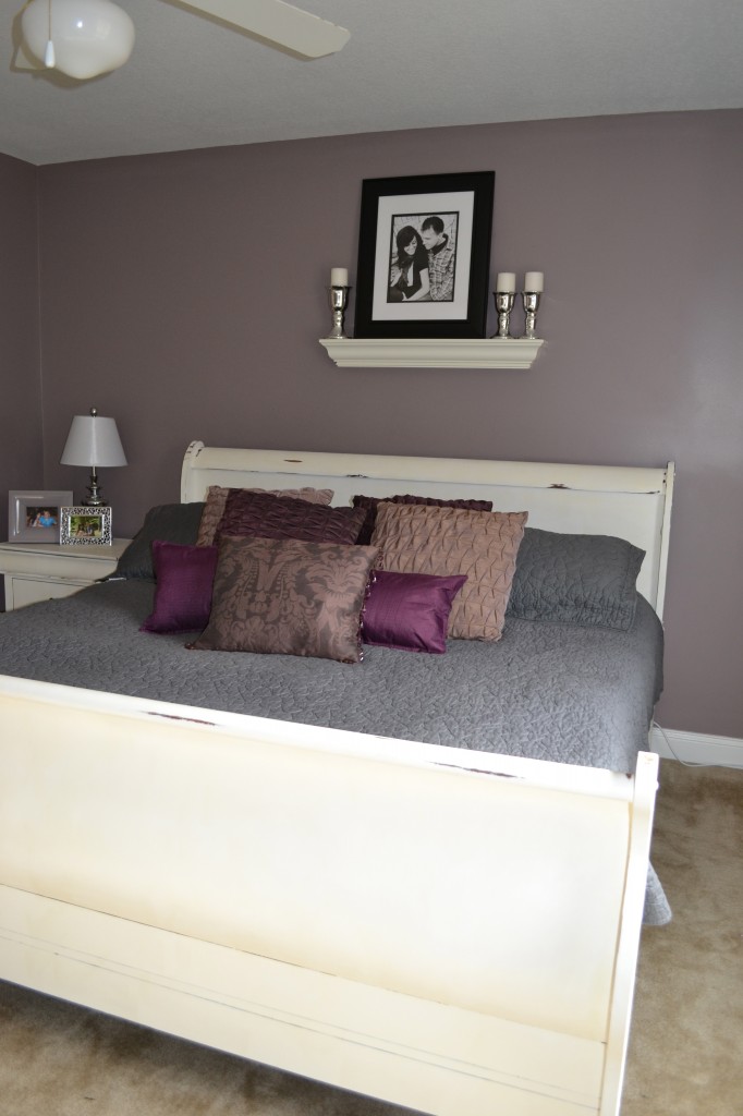 When we first moved in our house 3 years ago.. apparently I wanted purple walls. If executed correctly this could have been cute, but once again I never spent any time on our bedroom & tossed it aside. Moving right along to the next stage of our master bedroom…