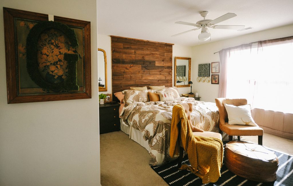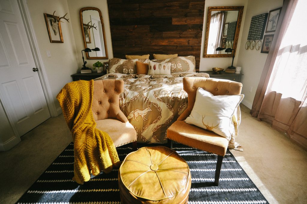 Welcome to our rustic master bedroom! The time is finally here that I get to share with you our master bedroom re-do. I have been talking about re-doing our bedroom for quite some time now & at the beginning of November Mr.LMB & I finally decided to buckle down and really work on it. I wanted to create a cozy sanctuary that reminded me of an eclectic cottage nestled in the woods. I wanted a place where we could relax, hangout, & somewhere where we never wanted to leave. I think we have our cozy eclectic cottage room that we wanted, & we love it….