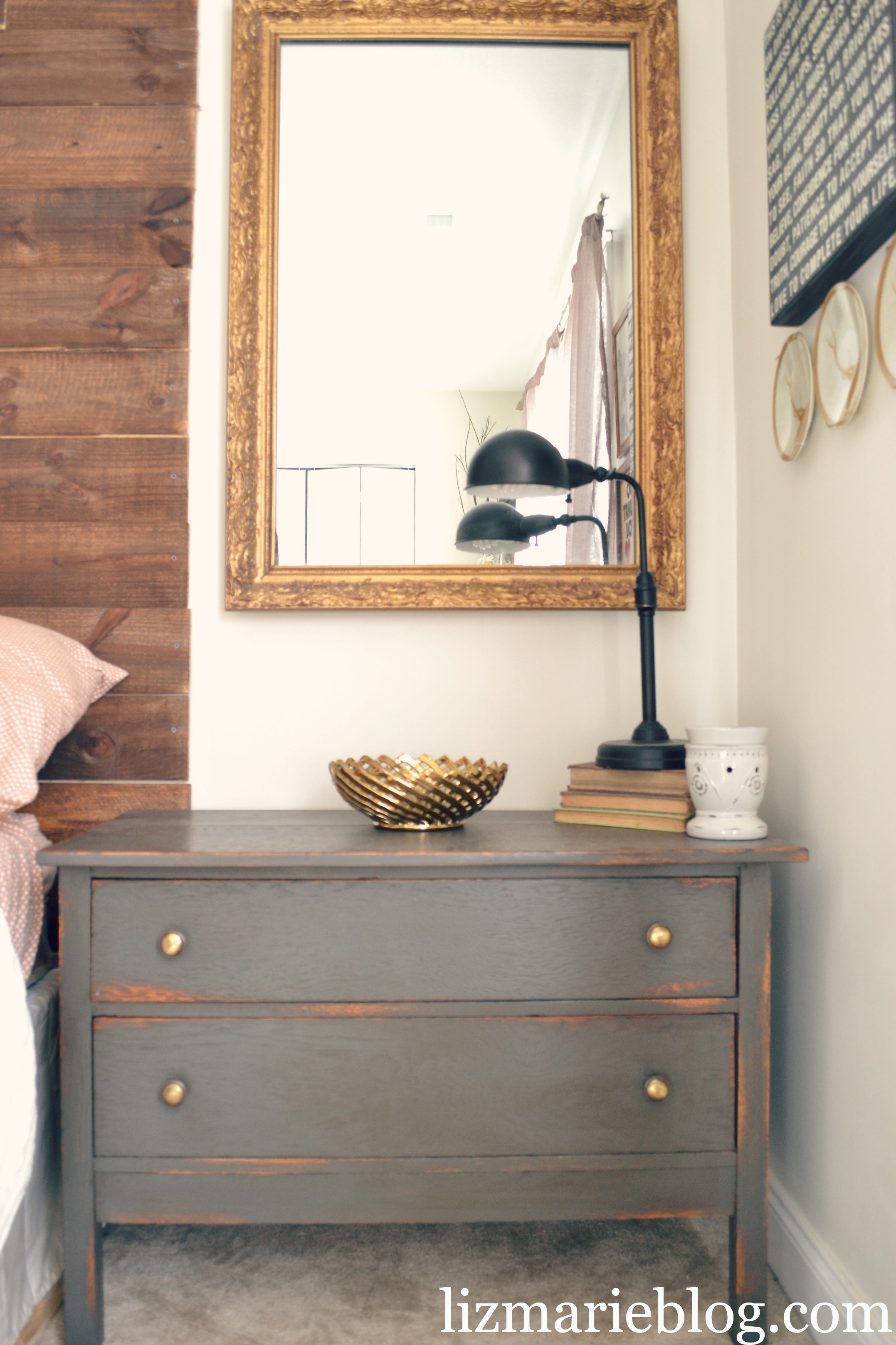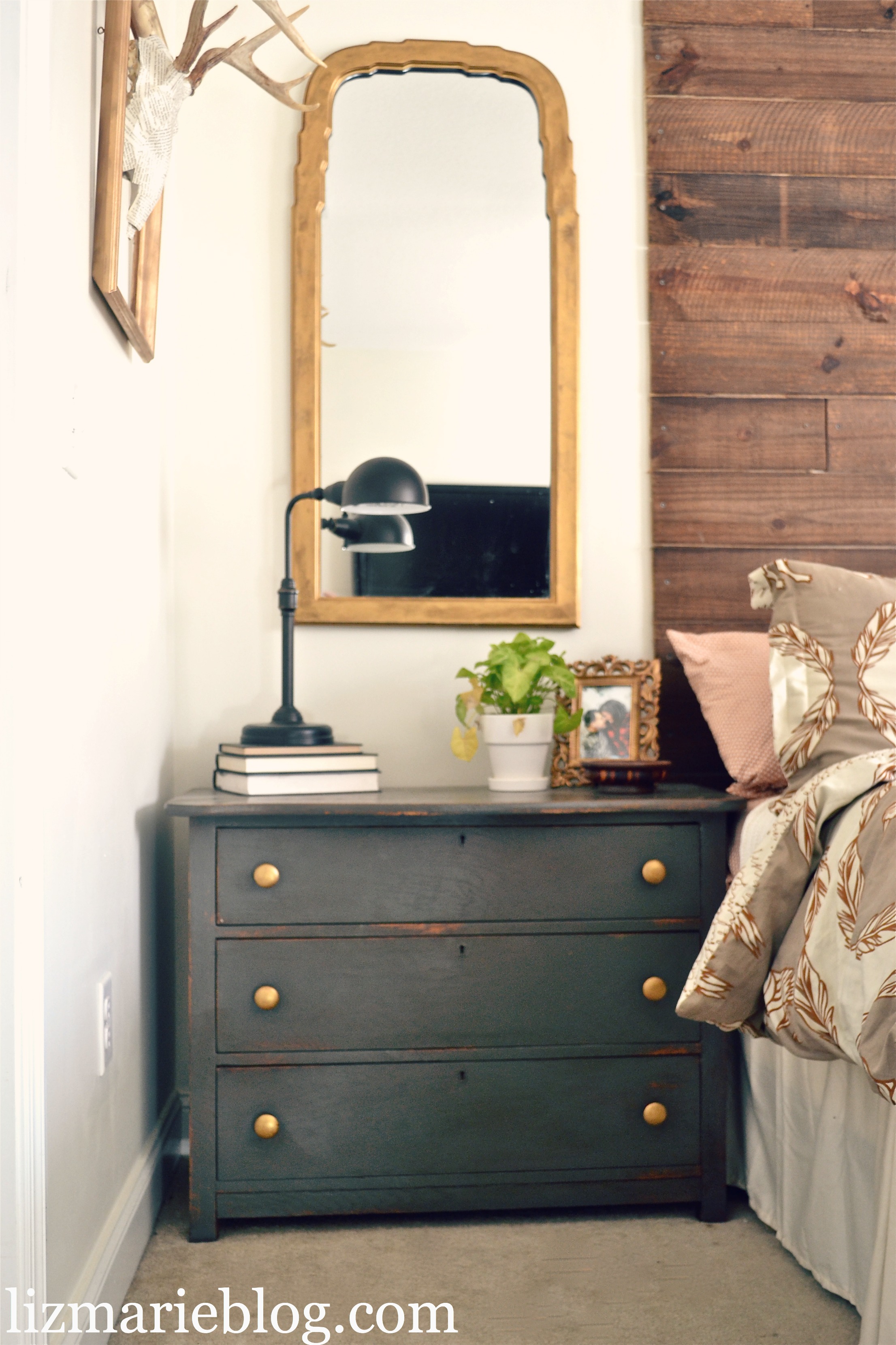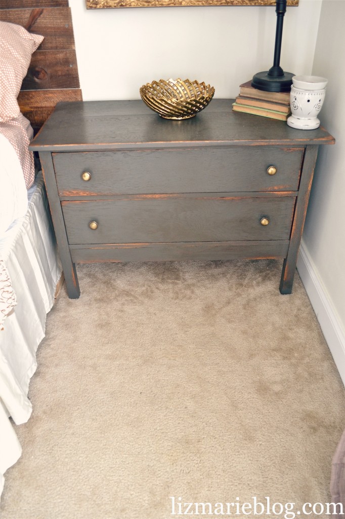 Both of these pieces were bought at a local antique store near our house, but at different times. I wanted two different nightstands that didn’t match, but I wanted to make them uniform with the color and finish. I love how this pair works in our room…