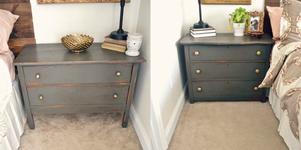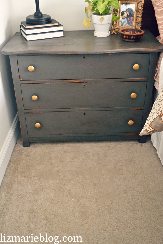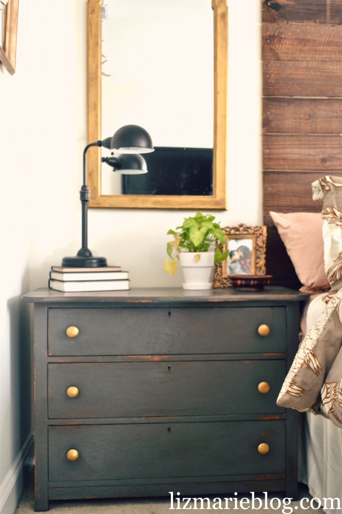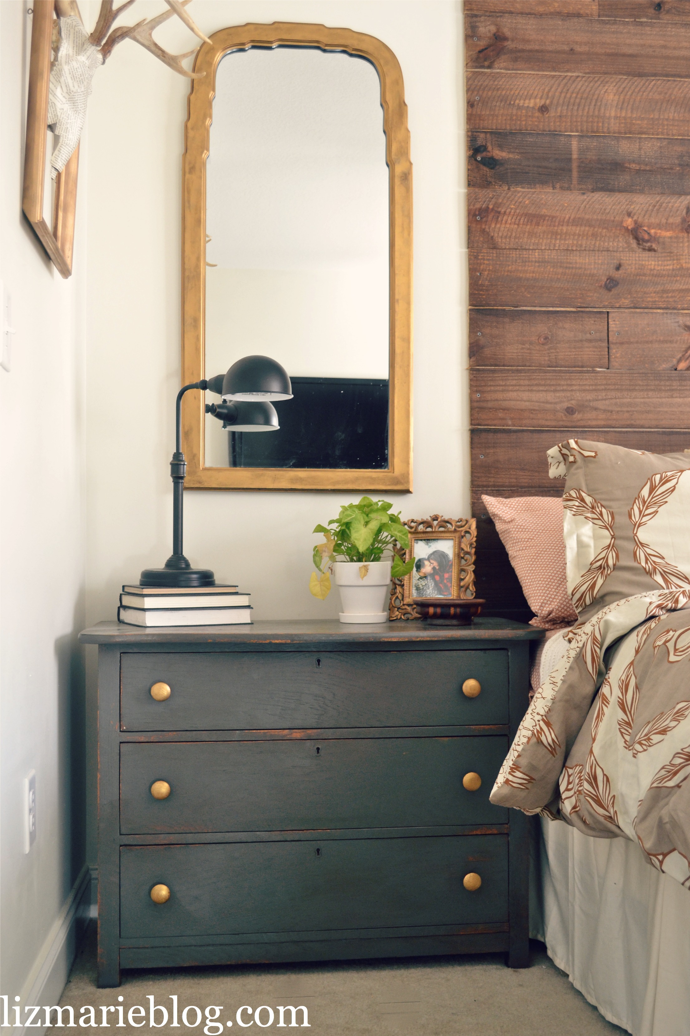 Both of these pieces were bought at a local antique store near our house, but at different times. I wanted two different nightstands that didn’t match, but I wanted to make them uniform with the color and finish. I love how this pair works in our room…