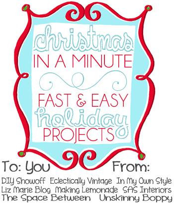 Hi friends!! I am back with another christmas DIY project. This one I teamed up with some other fabulous bloggers with & we are bringing you “Christmas in a Minute” DIY projects. We wanted to help show you ways you can decorate for the holidays that wouldn’t take you hours to do. If you have a few minutes here and there you can use these Christmas decorating ideas to spruce up your home for the Holidays. My DIY project is a simple way to spice up your Christmas tree with a few items from the craft store.