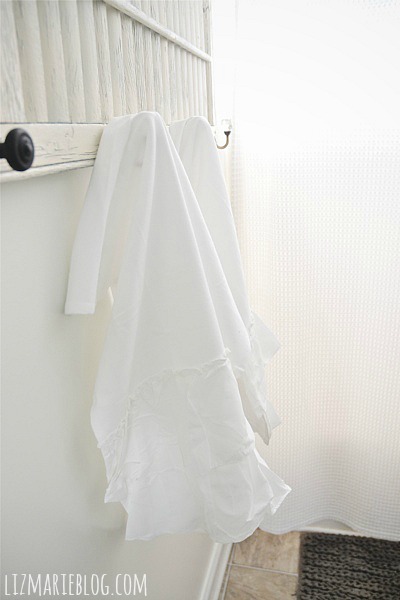 I got the audrey towels from Off The Cape & I’m pretty obsessed with these ruffled beauties in our guest bathroom. Many of you know that we are in the middle of re-doing this space. You can see those updates {here} & {here}.