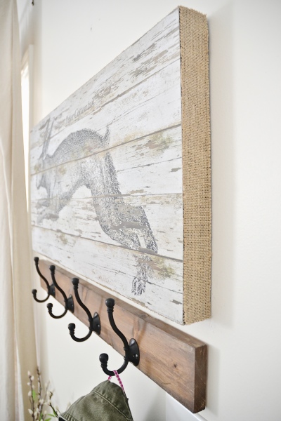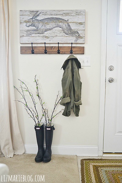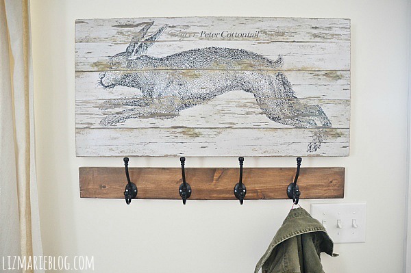 My little obsession with rabbits continues. Actually, Mr. LMB spotted this guy hiding on a shelf & picked it up & told me I needed him. For $20 I couldn’t pass it up! I had no idea where we were going to hang it until I got home & was greeted once again by the empty wall by the front door…