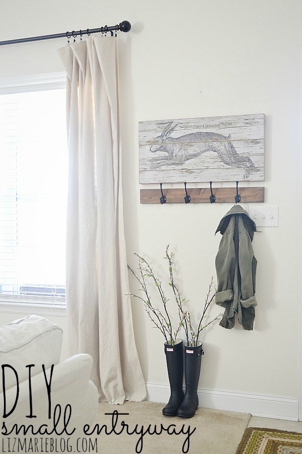 Our entryway has literally been empty for the longest time. O, and by entryway I mean a tiny 45 inch wall between the front door and and the living room front window. We do have the card catalog “entry table” also in the living room entryway area that you can see {here}, but I also wanted to create a DIY small entryway right by the door as well for hanging keys & jackets. It all started when I stumbled upon a lovely piece of art at Home Goods this weekend.