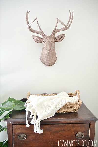 O, and did you notice that buck got a makeover? You can see the before {here}. We spray painted buck with antique copper spray paint from rustoleum & I’m kind of loving his new look. This little corner of the room is kind of coming along in our master bedroom “make-under” that it’s undergoing.