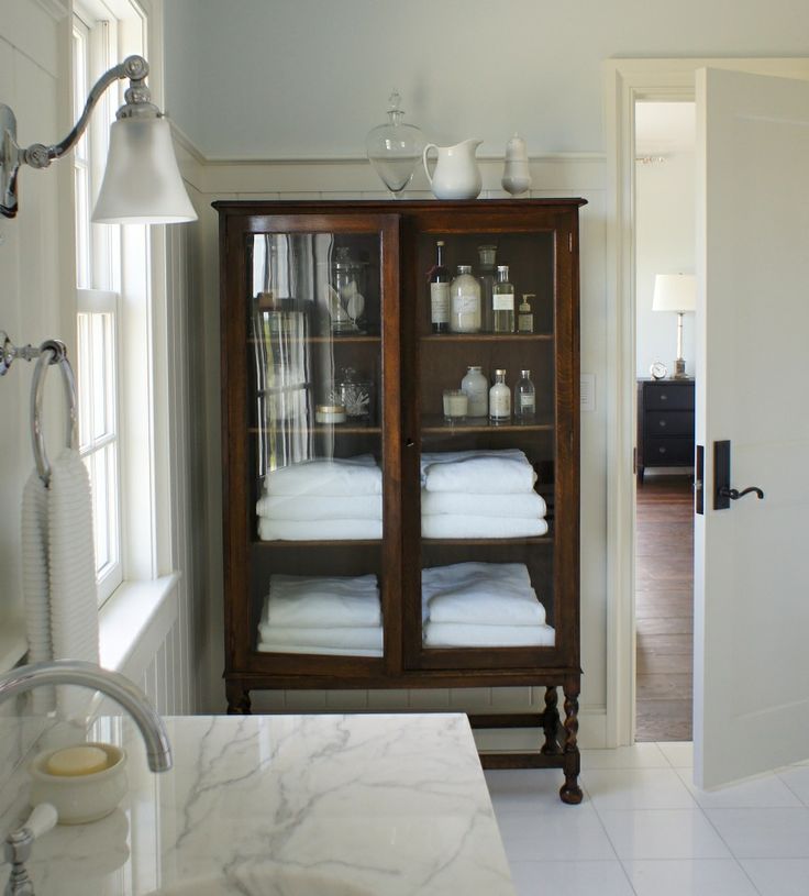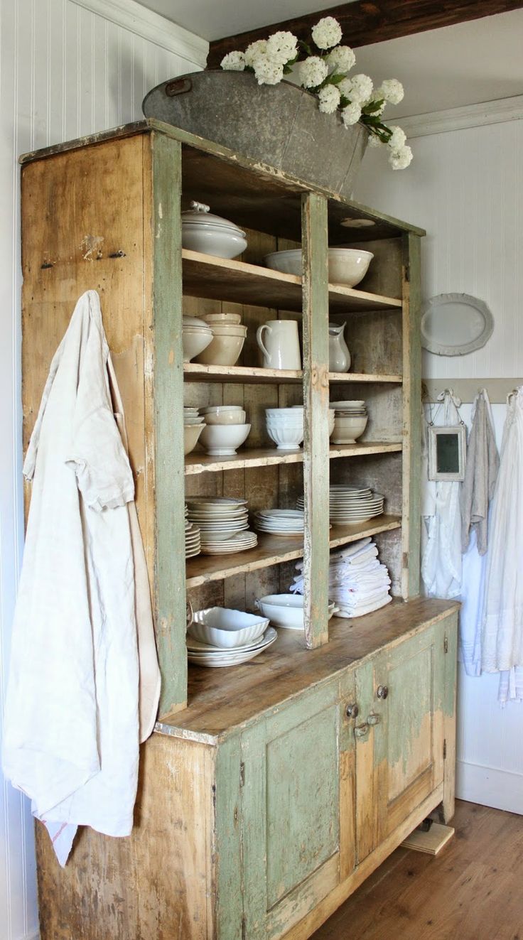 […] Antique kitchen island for the white modern traditional kitchen with the beautiful traditional crystal light above it. Love the old rustic style.Via lizmarieblog […]