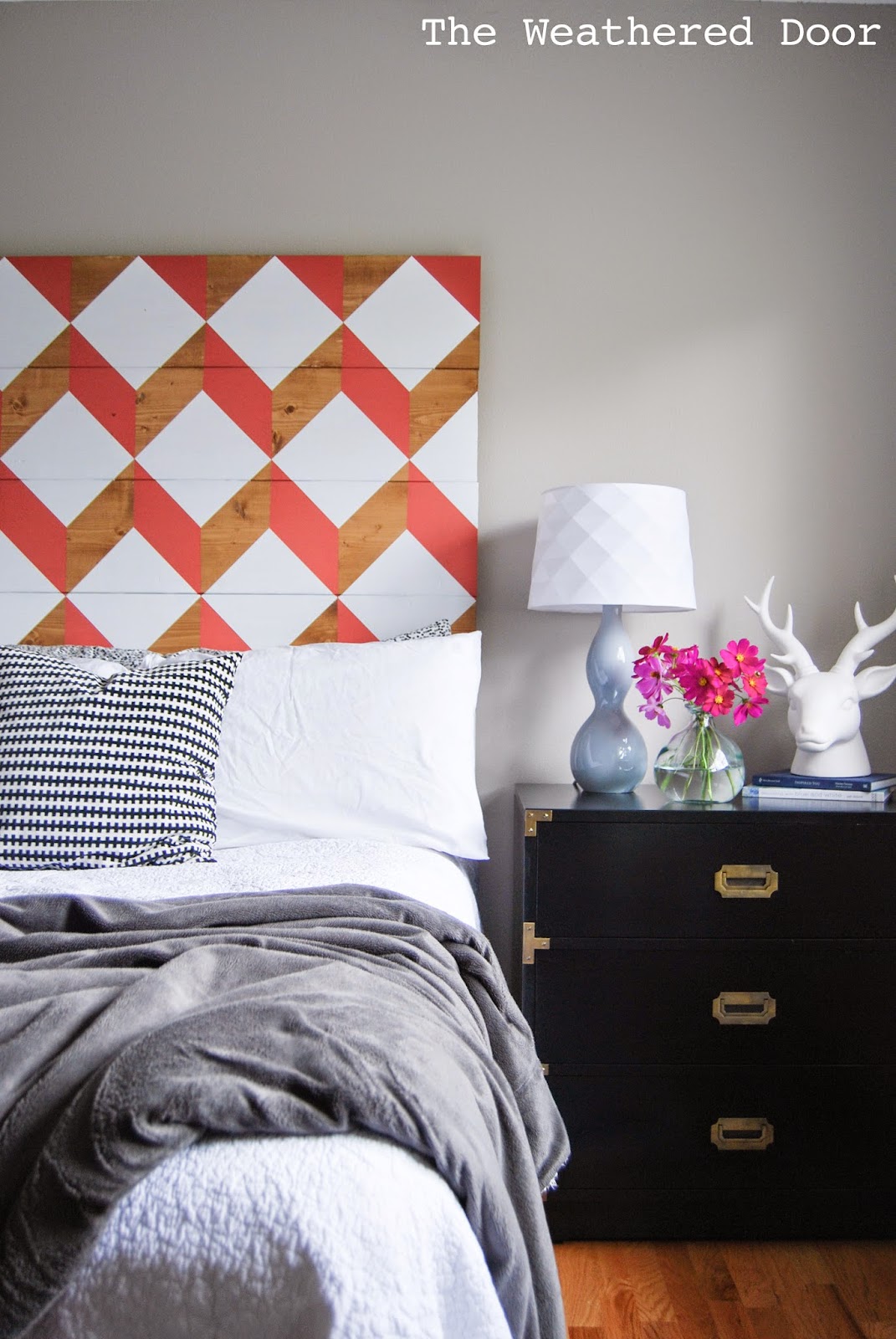 Geometric headboard from The Weathered Door.