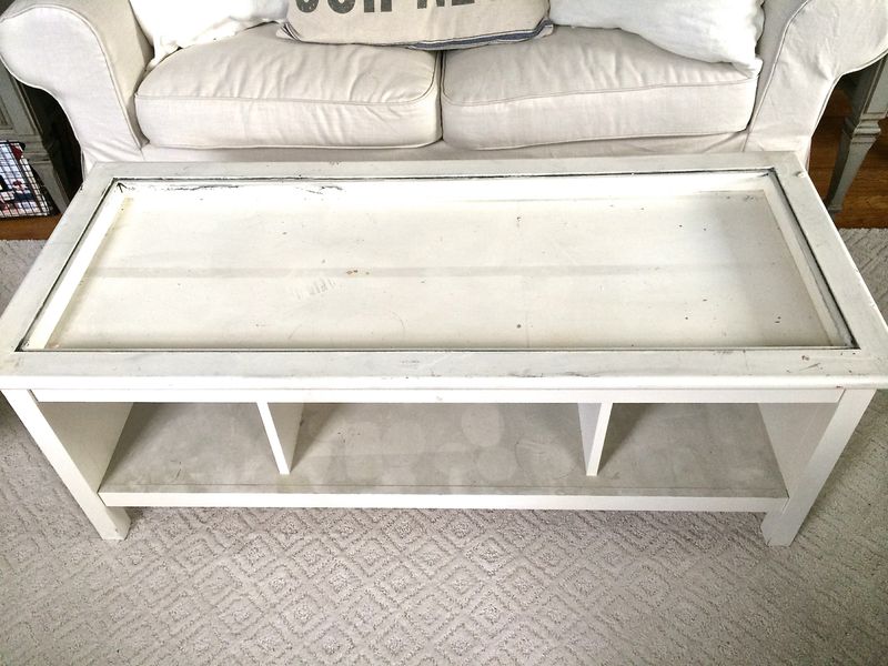 When moving into our new rental after selling our home, we ran in to the usual problem of some furniture not fitting & other rooms needing more furniture. One of those issues was our front sitting room needing a coffee table. We already had a coffee table for our living room, but the only other piece we had that would work had been sitting in our garage at the old house for a few years and used for storage. The coffee table was in bad shape, but with a little paint, tools, & the right safety gear we had the perfect wood top coffee table.