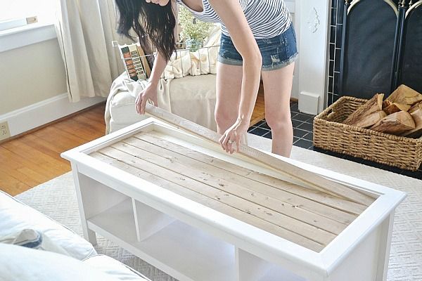 I love the way the wood makes your coffee table look clean and modern yet warm and adds texture. Great idea.