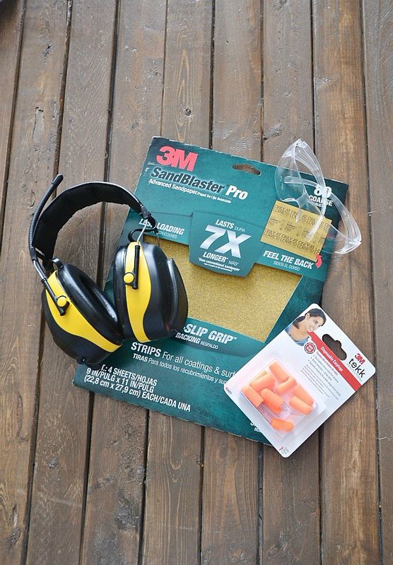 First things first is buying the materials & drawing up your plans. For this coffee table we wanted to do a slatted wood top & a new paint job. I knew we were going to be using the saw for this project so I got the proper safety gear as well. I know when I share our DIY projects I don’t always mention the safety gear, but it’s so important! For this project I used my 3M Safety Products (disposable earplugs & as always my safety glasses). Other items used for this project is the 3M SandBlaster Pro sandpaper, wood planks, paint, & a paint brush.