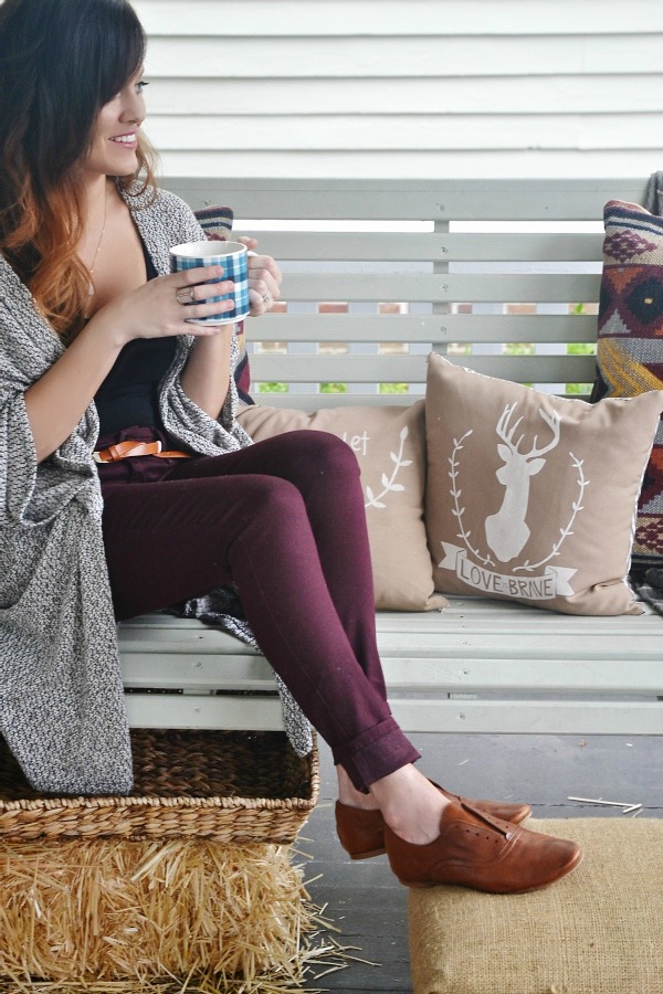 I know some of you are still holding on to summer, but me, I’m looking forward to fall. My decor & my wardrobe have already been steadily changing into the fall transition. Even though it’s still warm here in eastern NC, I have been finding ways to add fall pieces daily. Whether it’s jeans, a cardigan, & even some fall shoes. I’ve also been lighting fall candles everyday, doing some fall DIY’s, & also pinning fall things daily too. Ok, maybe I’ve gone overboard, but I can’t help it! Here is some fall porch & fall look inspiration to start your week off. The full fall porch reveal is coming really soon so stay tuned for that. Be sure to share the fall things you have been up to in the comments below. Hopefully you make me feel a little more normal.