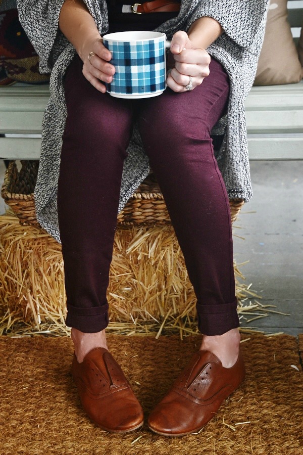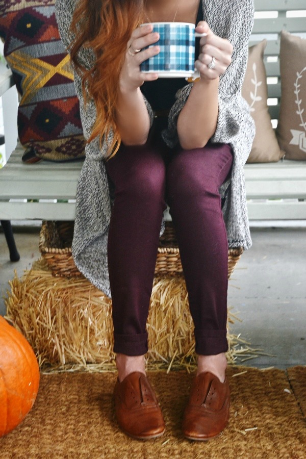 Look two details: Loafers- Marshalls, Pants- Target, Cardigan- H&M, Belt – H&M, Necklace- JaqJill {local boutique}. Thanks to my wonderful hubs for these photos during our porch hang out session today. & thank you to our amazing God for fall temperatures here in NC finally today.