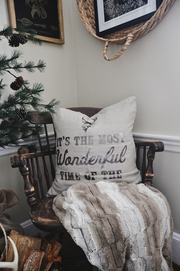 You know I had to pick something up with antlers on it. I loved this neutral pillowΒ with metallic accents to add a little sparkle to our holiday home. Again, please don’t expect me to iron anything around here.. it just doesn’t happen.