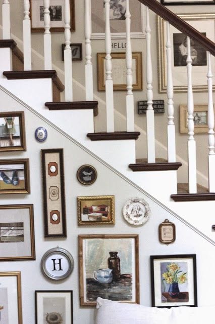 My brain has been spinning with new ideas for our Michigan home. Of course I have been busy with our new booth & life in general. Anyways… we still don’t have stair nose on our stairs, but I am already thinking of gallery walls for two sets of stairs in our home. There are actually three stairwells in our home, but one leads to our basement which isn’t even finished {yet}. I’m thinking two out of the three need some sort of gallery wall, don’t you think? I was gathering some inspiration for staircase gallery walls & I thought I would share some of my favorites that I found with you guys & you can let me know which ones you like best. Here are some of my favorites I found, if you have some to share with me, leave the link below in the comments!