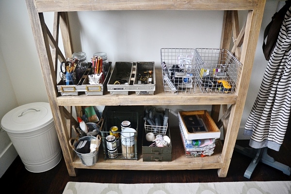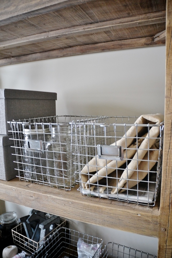 The shelves are gorgeous. Rustic but still so organized and clean looking. I need to find thos metal baskets 🙂