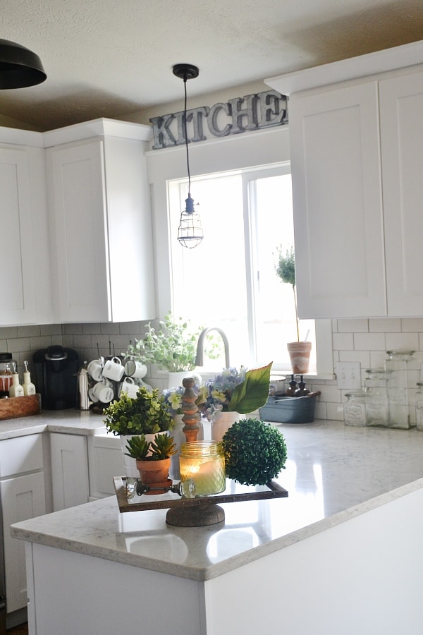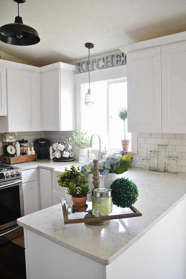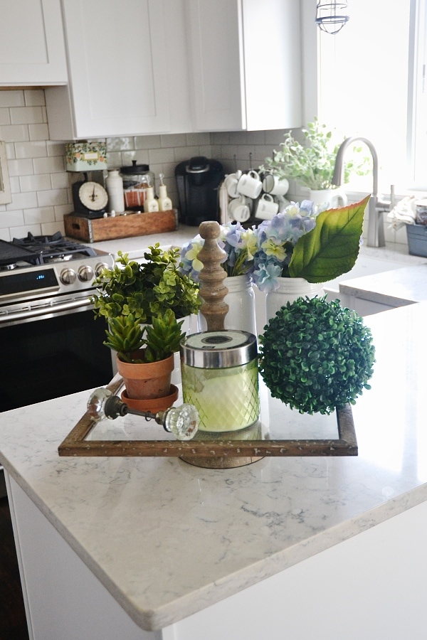 I love this tray! It makes the kitchen look so cozy. I have a similar tray on the table in my breakfast nook that I put napkins and some pretty salt and pepper shakers on. Now I want to add a touch of green to it! 🙂