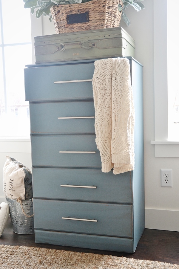 One of the reasons that I love painting furniture is that I love the challenge. I love the challenge to make the piece look completely different from how it look originally. The power of paint surprises me every time & I think that’s why I love re-doing furniture so much. This past week I got some new Maison Blanche chalk paint colors & I was so excited to try them out. A lot of you [my amazing awesome talented lovely readers] have been asking me to use more color when I paint furniture. I listened! I may be starting out slow, but it’s a start none the less. I had quite a boring dresser that I wanted to spice up so I decided to try french blue & I kind of love how the dresser turned out…