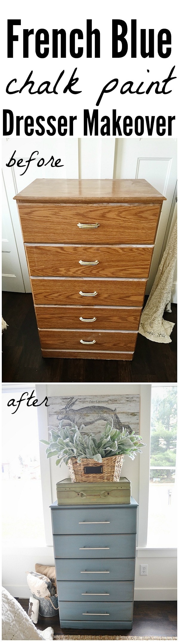 As many pieces as I’ve painted, and seen painted, I’m always so pleasantly surprised at the afters! The French Blue looks so lovely on this chest. Fresh, updated and beautiful!!