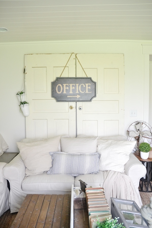 The only thing I’d change is the hardware! These look great there and add some texture and interest to that wall. I have an old door propped in a corner of my daughter’s apartment dining area and it’s so cute…we change what we hang on it every time I visit her because I’m like you and love to change things (often) and my sweet daughter lets me have fun in her space!!! ~Kim