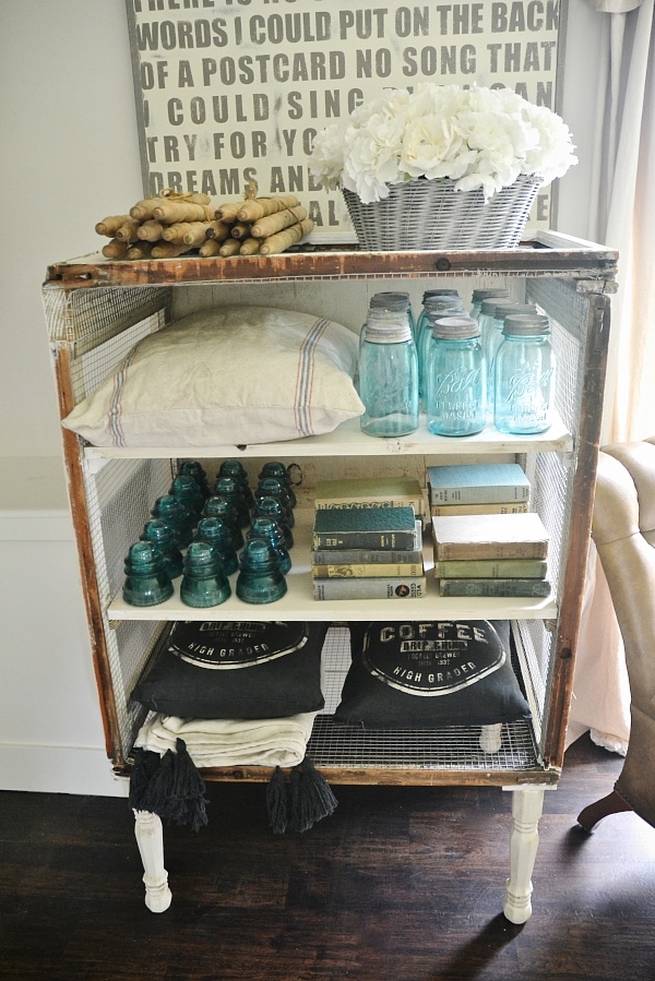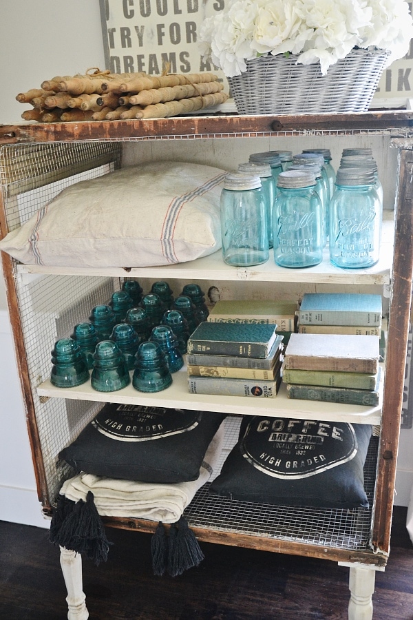 Such a creative piece!! I love that you used the glass insulators for staging/decor!! I have a tub of them from years ago that everyone loves when they “shop” our garage workshop haha! To think I almost pitched the free little gems lol! Have a fabulously awesome Thursday, Liz ! 😉