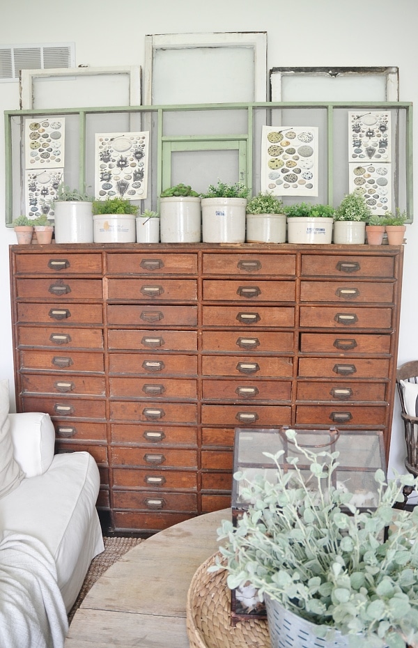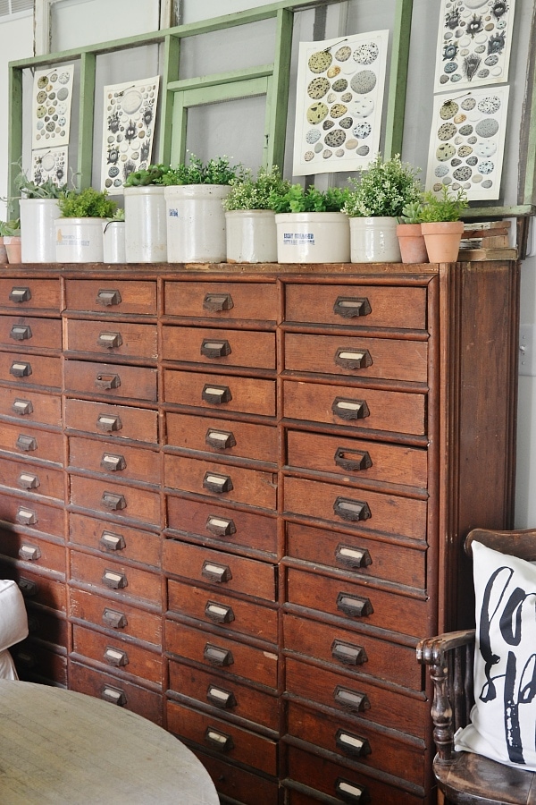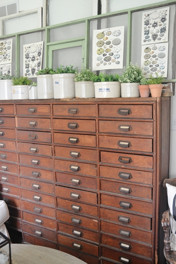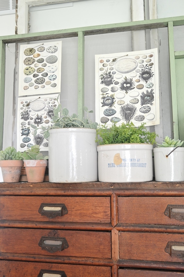 this looks great. glad to see another crock hoarder on the loose. i use a smaller version of a window screen to hang my earrings on. love that this was once on a food truck, and the colour is perfect for this time of the year.