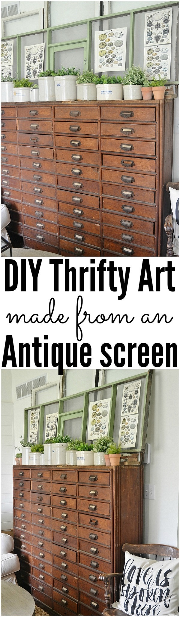 I’m loving the simplicity of this piece! I would have never thought to use screen as a background with these gorgeous art prints. I’m kicking myself for getting rid of my old screen door just last week now! Thanks for the inspiration 🙂