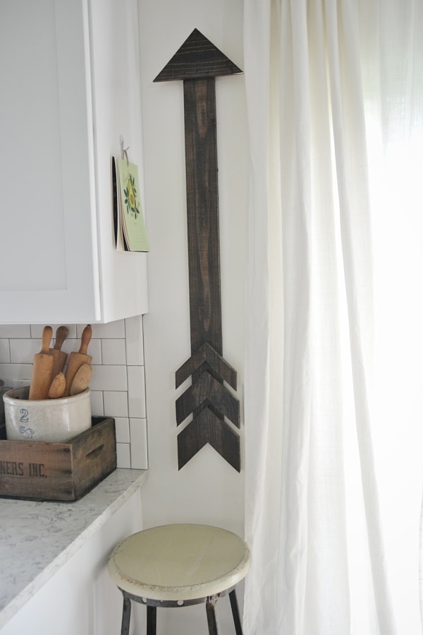 & do you all have a guess at how long this arrow will stay here? I don’t! We should all take bets at how long it takes me to move it to another spot in the house. You know I am always changing things around here, but that’s what keeps life interesting right? What do you think of our new wooden arrow art? I think I love it. Let me know what you think in the comments below,find me on Facebook, & chat with me on Instagram.