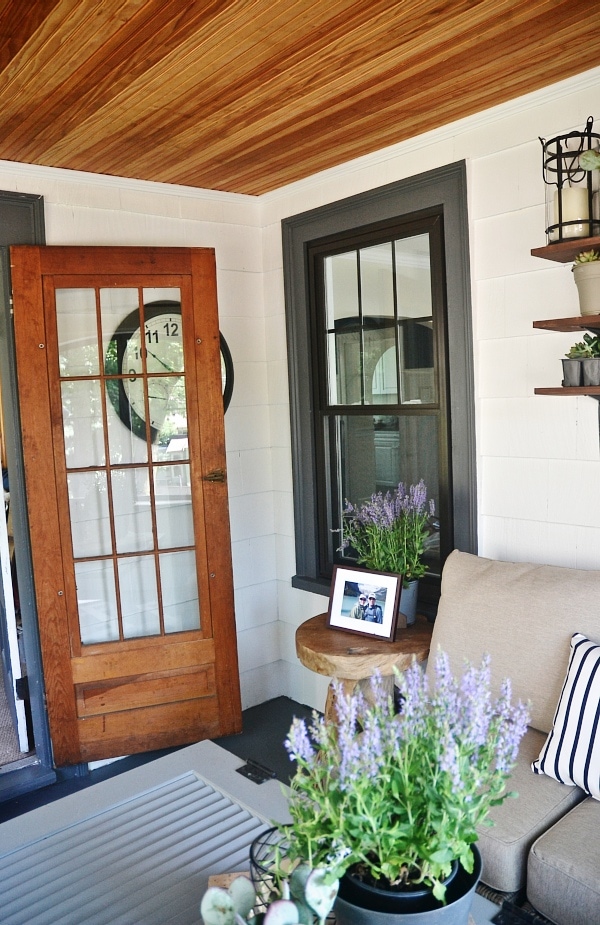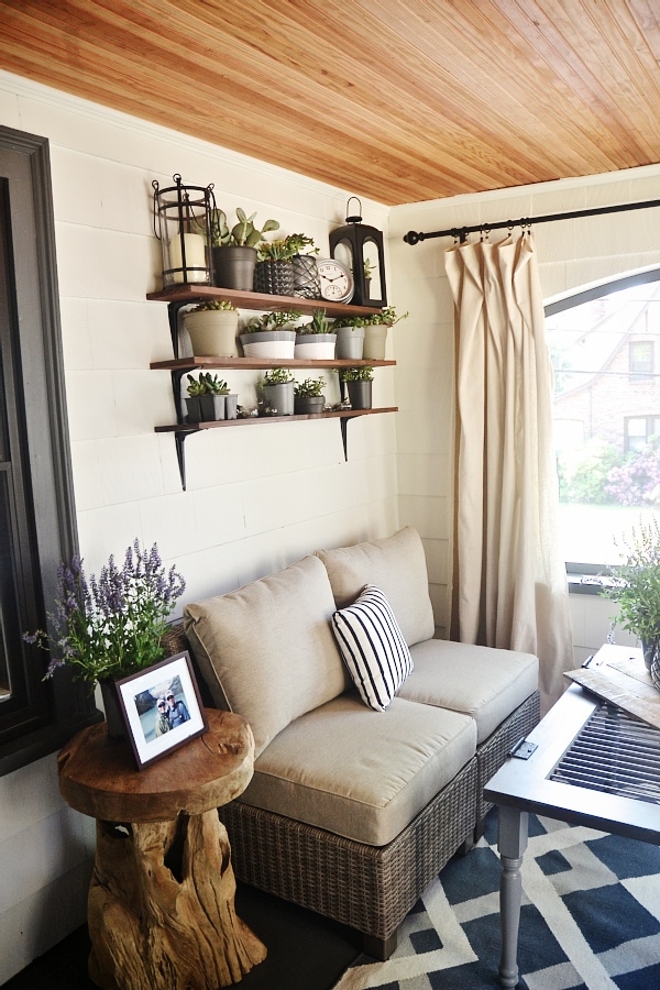 LOVE IT! The whole space turned out beautiful – so cozy and fresh. I love the warmth from the wood (so glad you left the ceiling) and how it works with all the gray and touches of greens scattered throughout. You have inspired me to make a plan for our sunroom. Amazing job!! 🙂