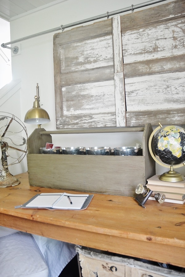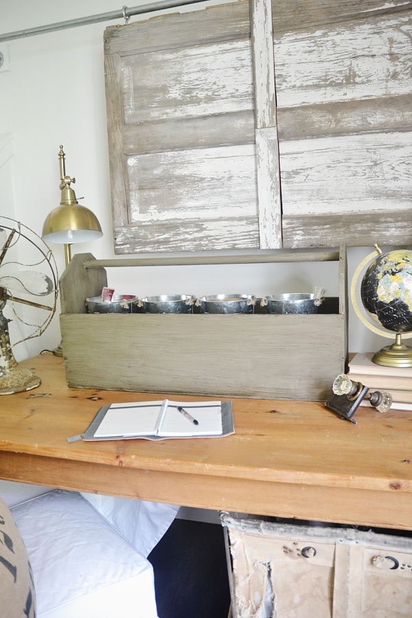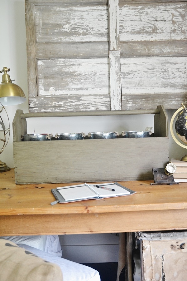 I always see these vintage tool boxes while out junkin, & I’m sure you can find them at a local antique store or market place as well. You could always make them too if you can’t find one & make it look old with paint techniques & the wood you use. These vintage tool boxes have so many possibilities, but this has to be one of my favorites because it helps keep the artsy person in me organized which is an accomplishment all in itself.