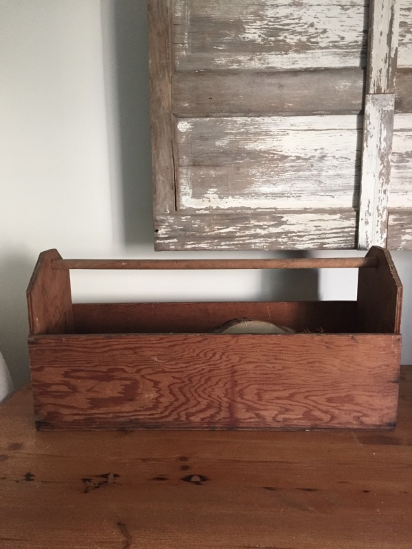 Hey guys! So, I found this vintage wooden toolbox a few weeks ago while out junkin’. I probably shared it on my Instagram when I got it, but from the moment I saw it I knew it had to be painted. Looking back on it I probably would have chosen another color than I did, but I’ve been obsessed with this spanish moss color lately & so there is that. Here is the vintage toolbox makeover, where it’s at in our house, & what I’m using ours for!