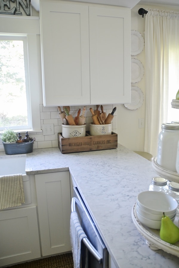 This is beautiful! One day, when we redo our kitchen, I plan on going the Quartz route. This only cemented that in my brain. You sure do make good use of a small kitchen!