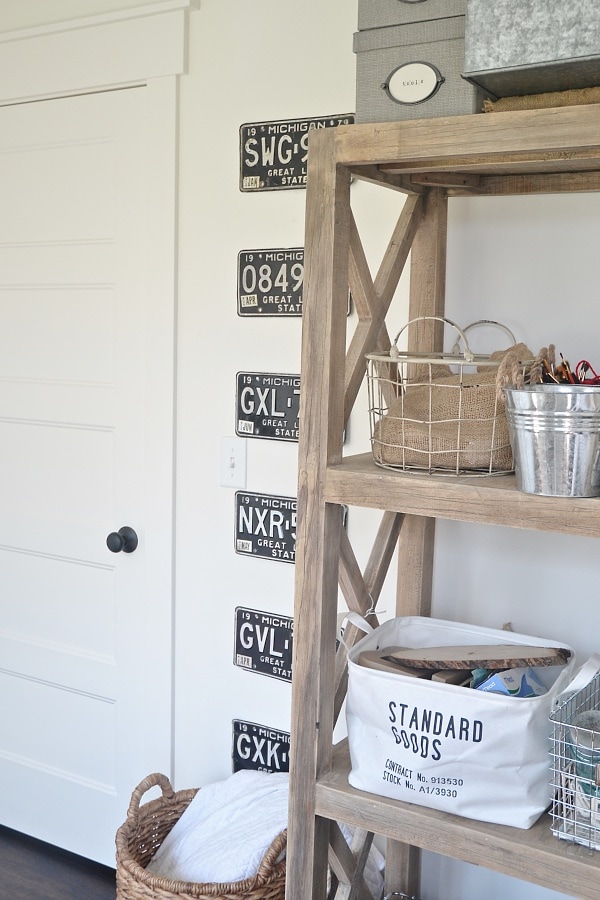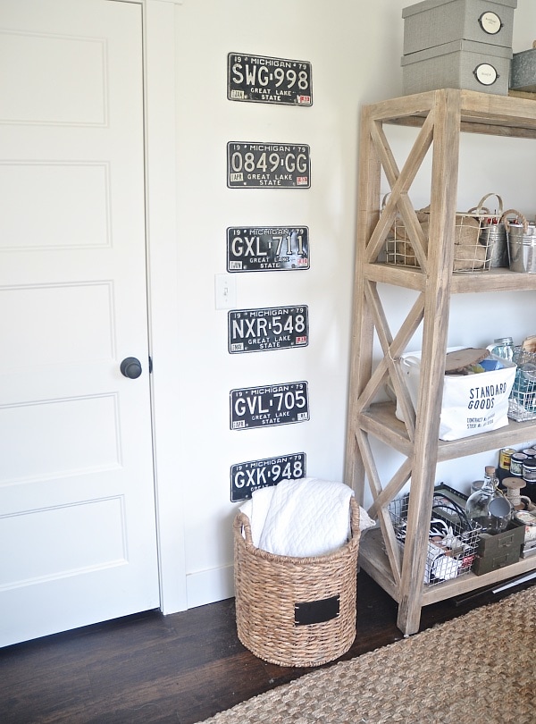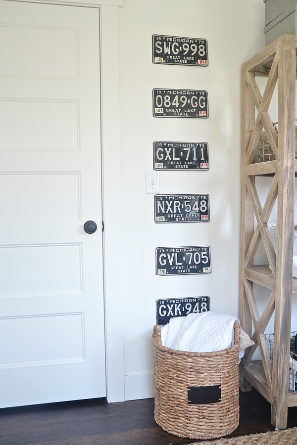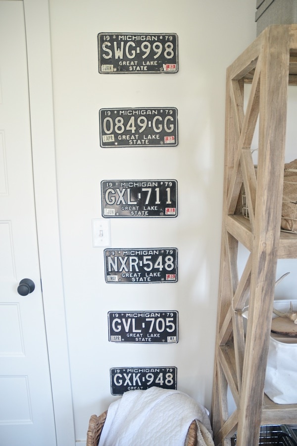 If you didn’t see the periscope, I literally just took a level, a hammer, & some nails & went at this wall. I love how the license plates fill in this spot that probably would have stayed empty because of it’s awkwardness. & I also love that the license plates were around $2 each. Such a simple DIY license plate gallery wall Here is another little vintage find I go that same day & hung in the office…