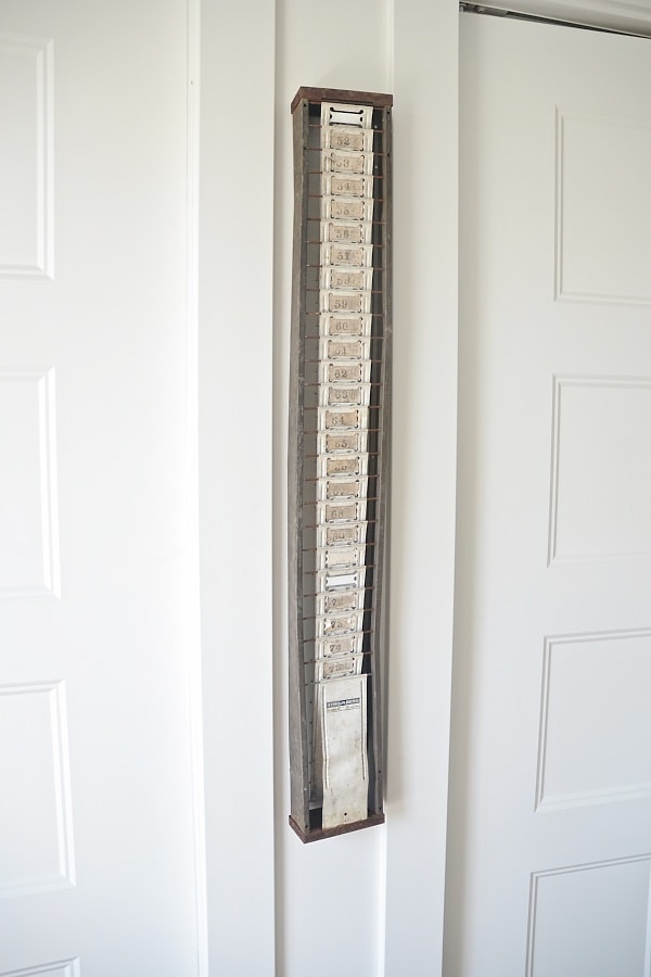 This vintage time card holder was a random find & I honestly didn’t know where it would fit in our house, but I just had to have it. Then I spotted this little spot in our office in between our closets & it fit like a glove. Love when that happens. Some people on Periscope were joking that Mr. LMB should clock in with a time card… we had a huge laugh over that & than he told me I should because I’m the one who struggles to stay on task… with life. Anyways I got some more vintage finds recently & I will show you soon what we did with those & this is just one more step to the office being done! You can see more office progress that I posted about [here]. Let me know what you guys think of my finds & I hope you had a great weekend! Let me know what you think in the comments below, on Facebook, & chat with me on Instagram.