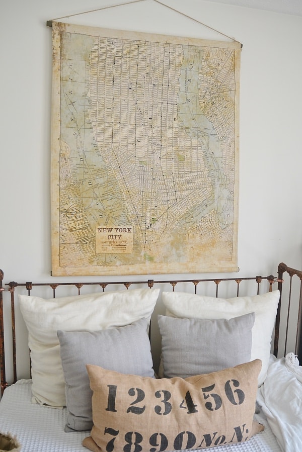 THAT MAP!! Obsessed. THAT KITCHEN LAMP!! Obsessed. YOUR GUEST BEDROOM!!! Obsessed. I have been looking for inspiration for my new master bedroom makeover, and I think I just found it!! YOU!! Obsessed. Looking forward to your full room reveals! ~Kim