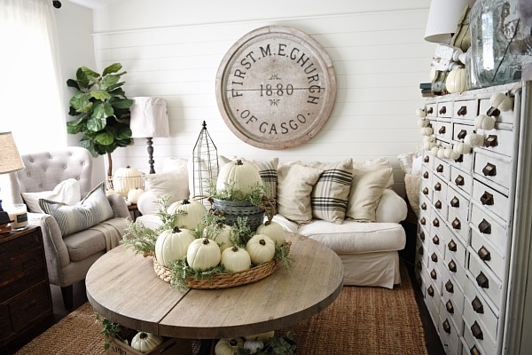 I love home tours. Your home is so charming and I love those white pumpkins! Thanks for the inspiration.