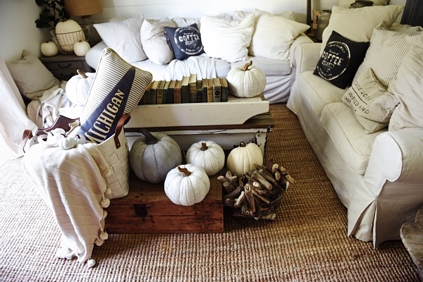 Love it Liz! I love keeping up with your blog through every season. I am transitioning my home to fall decor right now and wanting to mix it up with my throw pillows. I have the same white couch as you and have been using pops of blues in my throw pillows but I think I am wanting a more neutral look for fall. Where are some of your favorite places to buy throw pillows?