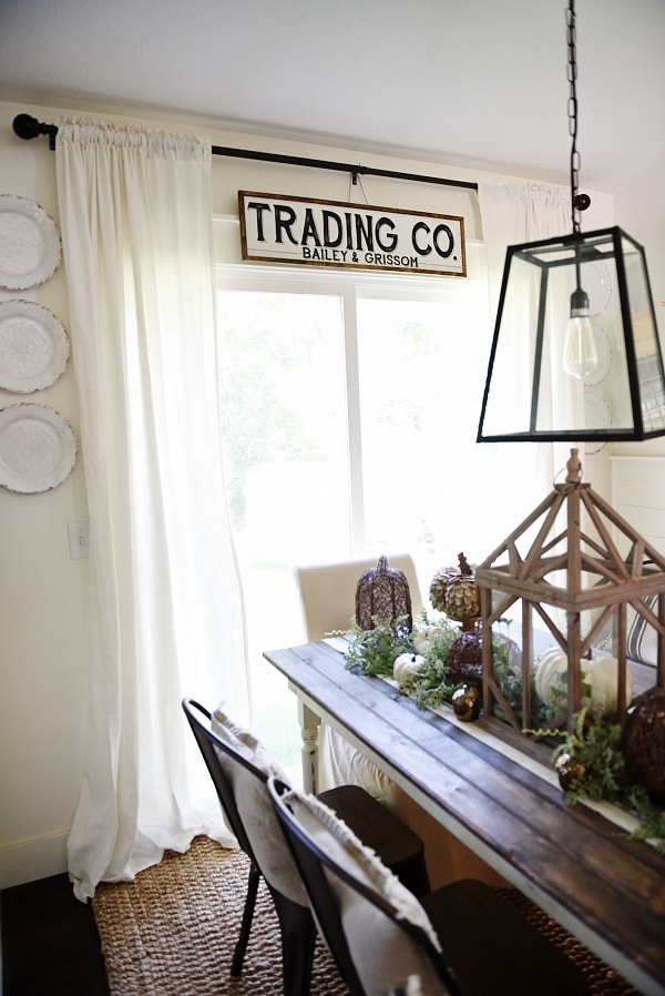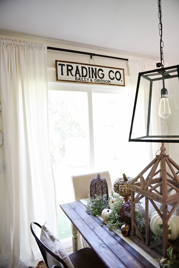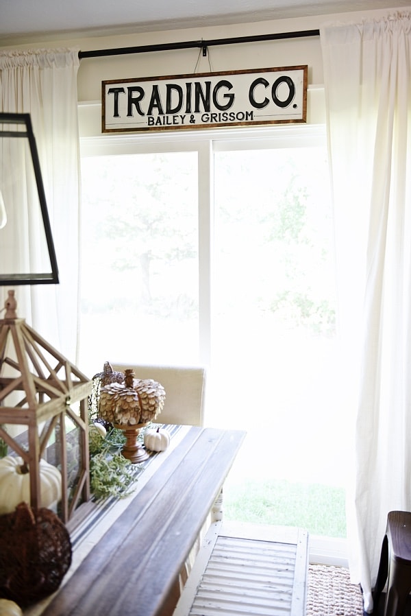 Some of my all time FAVORITE things to have in our home among the antiques, vintage, & home decor, is items from handmade shops. It’s just so special to have a piece that is handmade with love by someone who loves what they are doing. I recently found Down Grace Lane on Etsy & I was obsessed right away. Her signs are simple, rustic, & have a farmhouse vibe that I’m obsessed with. I ordered two signs from here [one I’ll be showing now & one at Christmas time]. I decided to hang on in our dining room above our slider door as soon as it came in the mail. It was one of those things that was on a whim & it happened to work out. I wanted to quick stop in today & share the new dining room sign with you guys today & also a coupon code that she is so generously giving my readers down below…