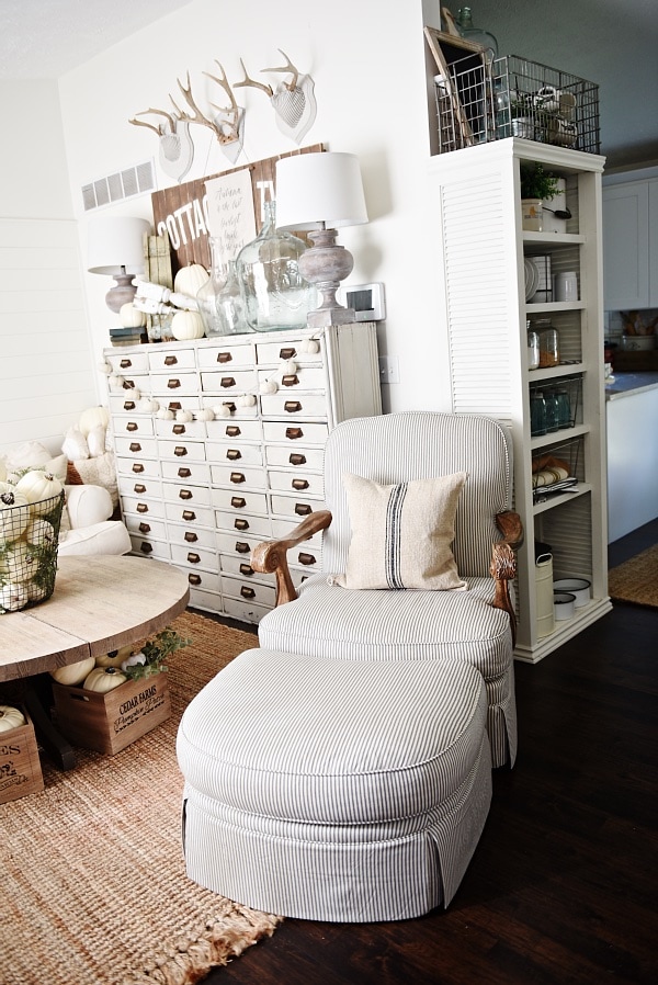 So there is the chair in our upstairs living room. I love having coffee here in the morning & it’s now the dogs favorite place to sleep as well. They lay on the footstool almost all day which is quite cute & I’m sure you will see tons of photos on my social media of them & me enjoying this chair for years to come. What do you think of our ticking stripe chair makeover? Let me know in the comments below, find me on Facebook, & chat with me on Instagram. As always, THANK YOU from the bottom of my heart for stopping by my little blog & sharing it with your friends. It means the world to me! Oh, & go hug your grandmas. xx
