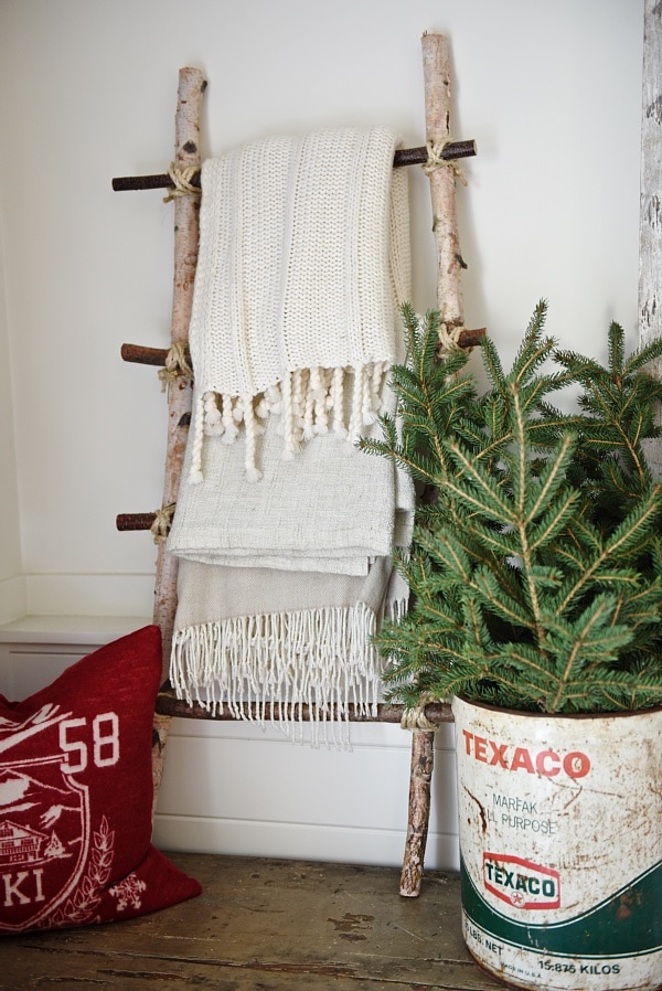 That is the cutest DIY ladder I have ever seen. Genius. Love your blankets on it..