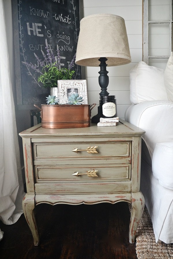 Mossy green end table makeover [click here to see the before and after]
