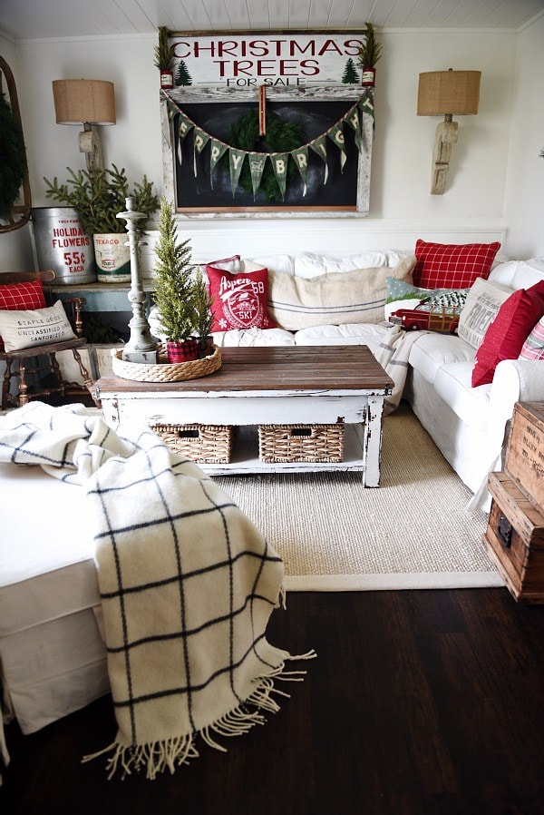 Cozy cottage Christmas living room [click here to see the full tour]
