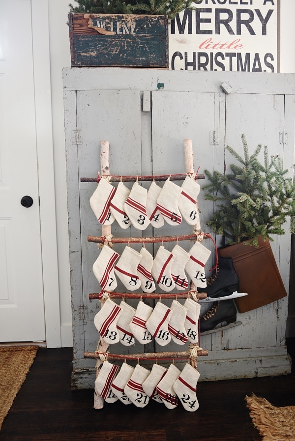 This is so cute! I’m a tad embarrassed to say but we have 3 Advent Calendars. One is made of little embellished paper bags strung like garland on twine, one papee Stars hanging down from a tree branch spray painted white (both that I made) and the third was a gift… A beautiful wooden magnetic set. Love your blog and house! Merry Christmas!