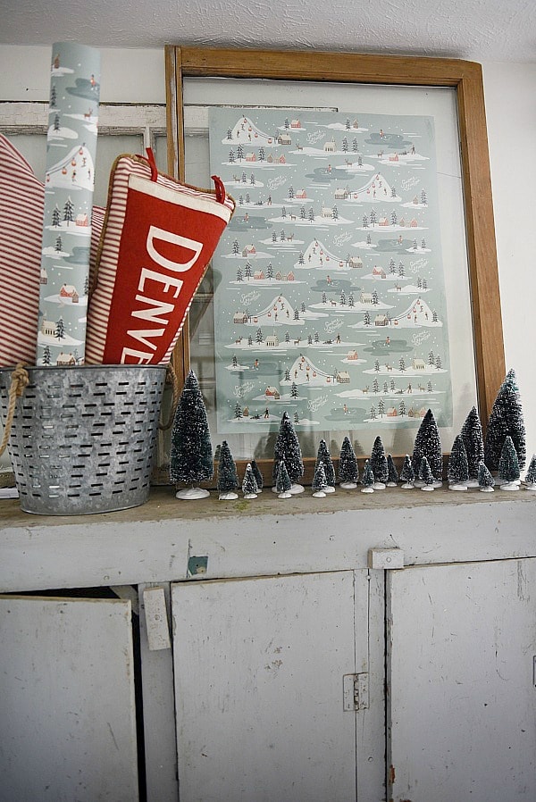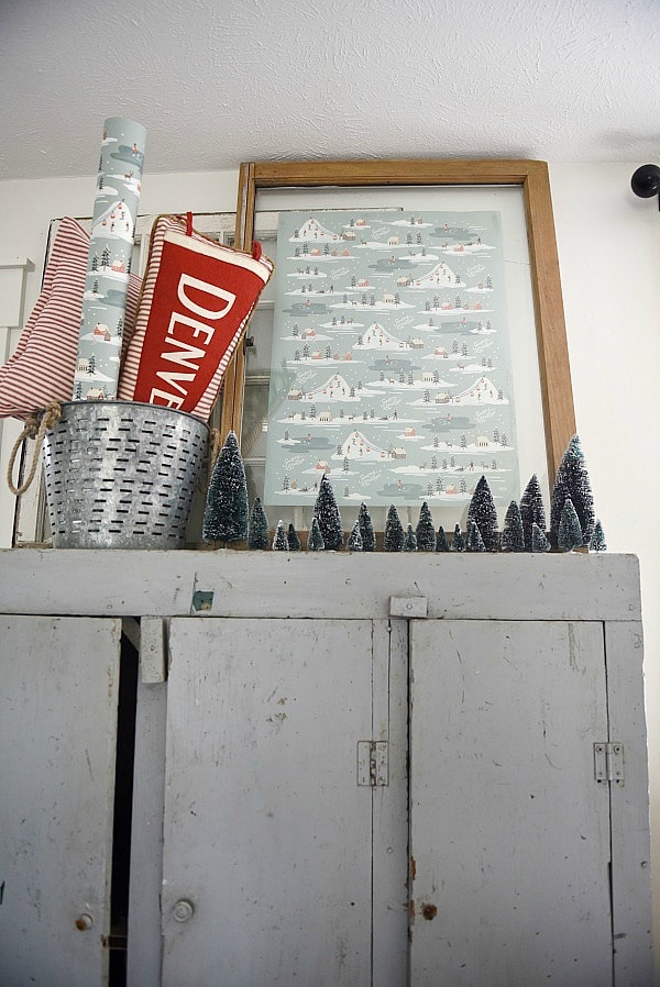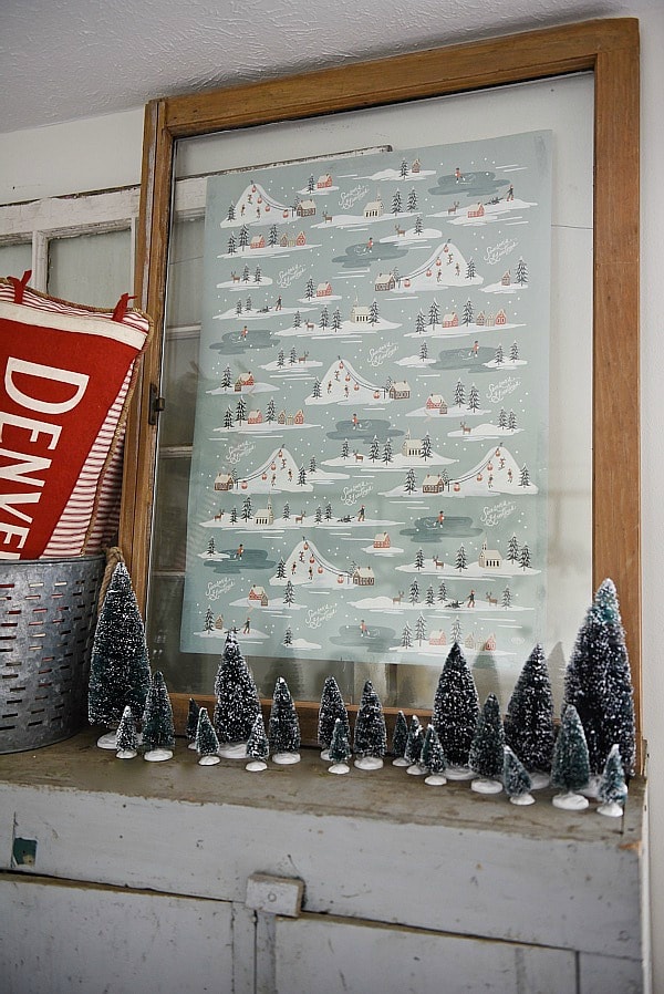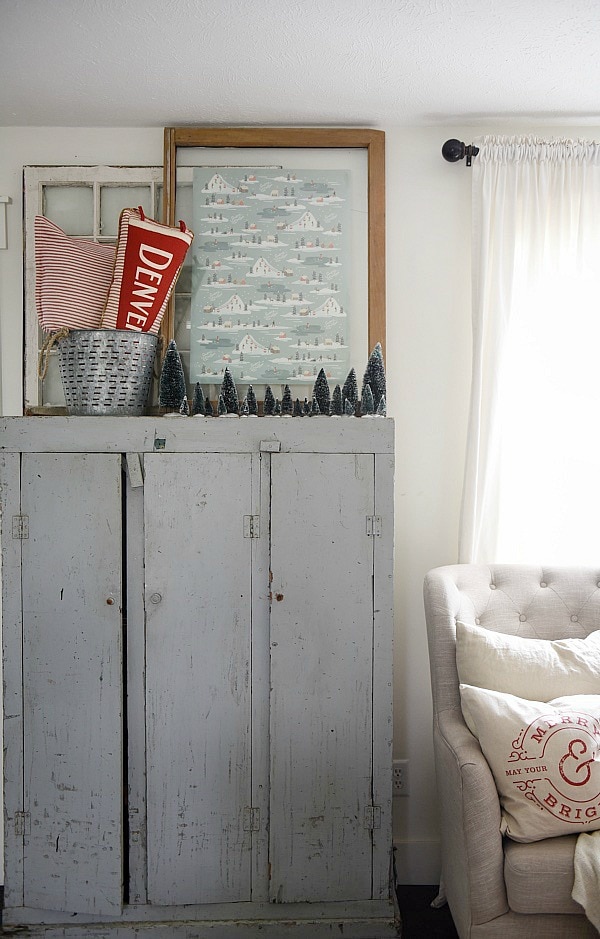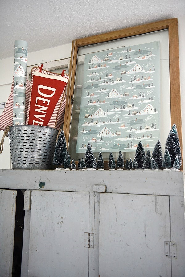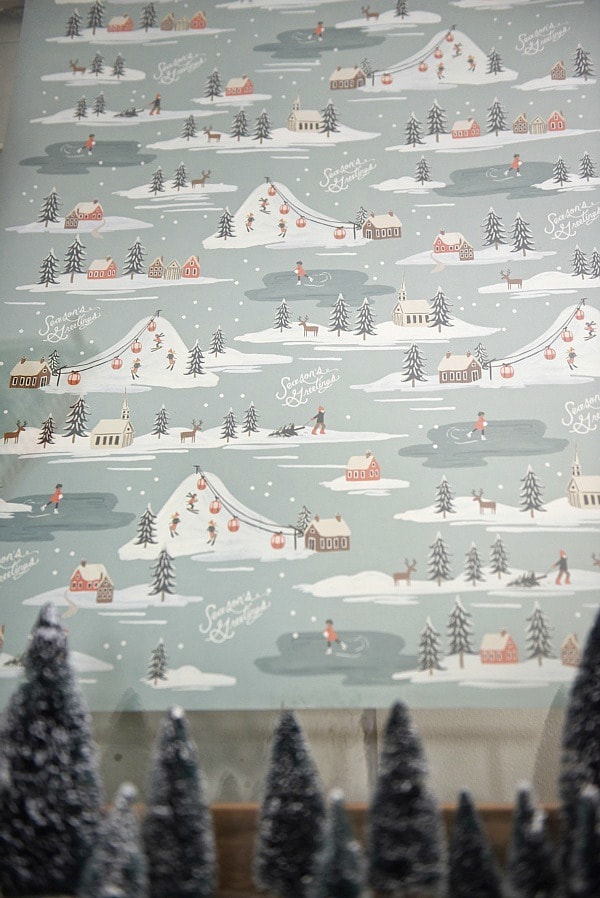 I mean. The cutest wrapping paper ever right? This is literally the most easy DIY art ever. & the wrapping paper made it easier on me. My plan was to roll the wrapping paper out & cut it to the size that I wanted, but to my surprise it was already pre-cut into sheets. *ANGELS SINGING* I didn’t even have to cut anything, that makes this lazy girls day. I took one of the pre-made sheets off of the roll of wrapping paper & I lined it up on my antique window that I had in my garage. I attached the sheet of wrapping paper on to the window with double-sided tape. Don’t laugh at how easy this project is… just go and do it for your Christmas decor.. like now! This wrapping paper is rifle paper co. [here] just for reference if you want to find it for yourself & you are not local to me.