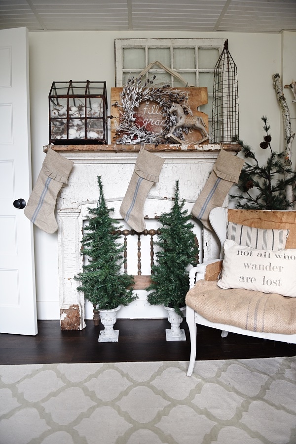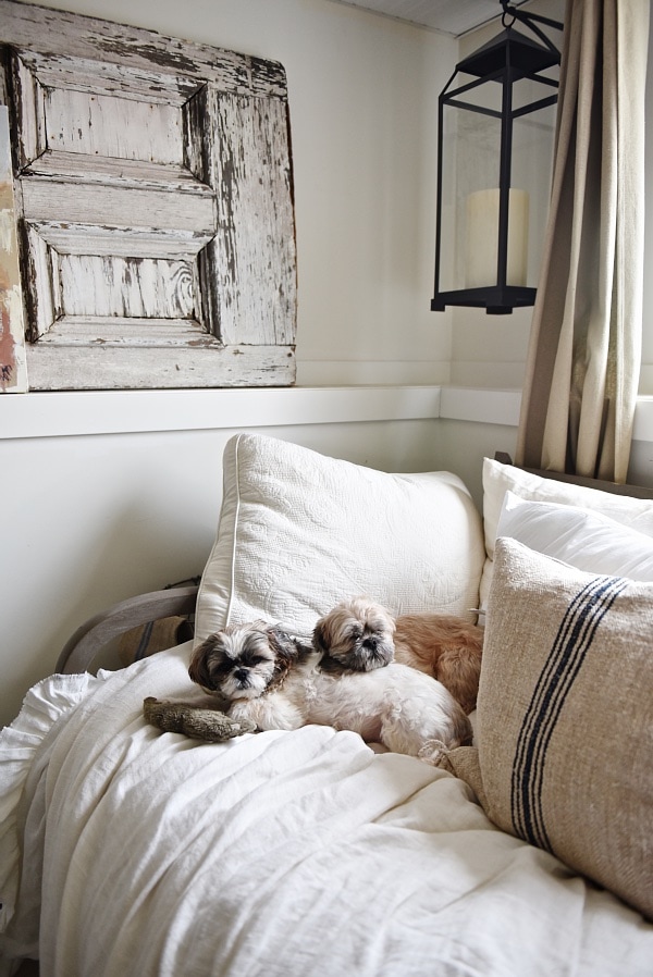 Eeeeeeek. We finally have a mantel in this house!! I quickly threw together a neutral-inspired Christmas mantel to share this space with you guys, but I’m sure it will be changing soon & you know I will share it with you then too. I can’t wait to finish this room now because I’m loving the direction it’s going. I picked this mantel up from my friend Abigail from Binks And The Bad Housewife [here]. It was in her barn & it was love at first sight when I saw it. Those lovely stockings are from A Cottage In The City, the trees are old I believe from Michaels, the terrarium is from Hobby Lobby, & that wreath is from HomeGoods. & a sneak peek of the other side of the room? I caught the pups sleeping on the daybed while I was snapping photos of the fireplace…